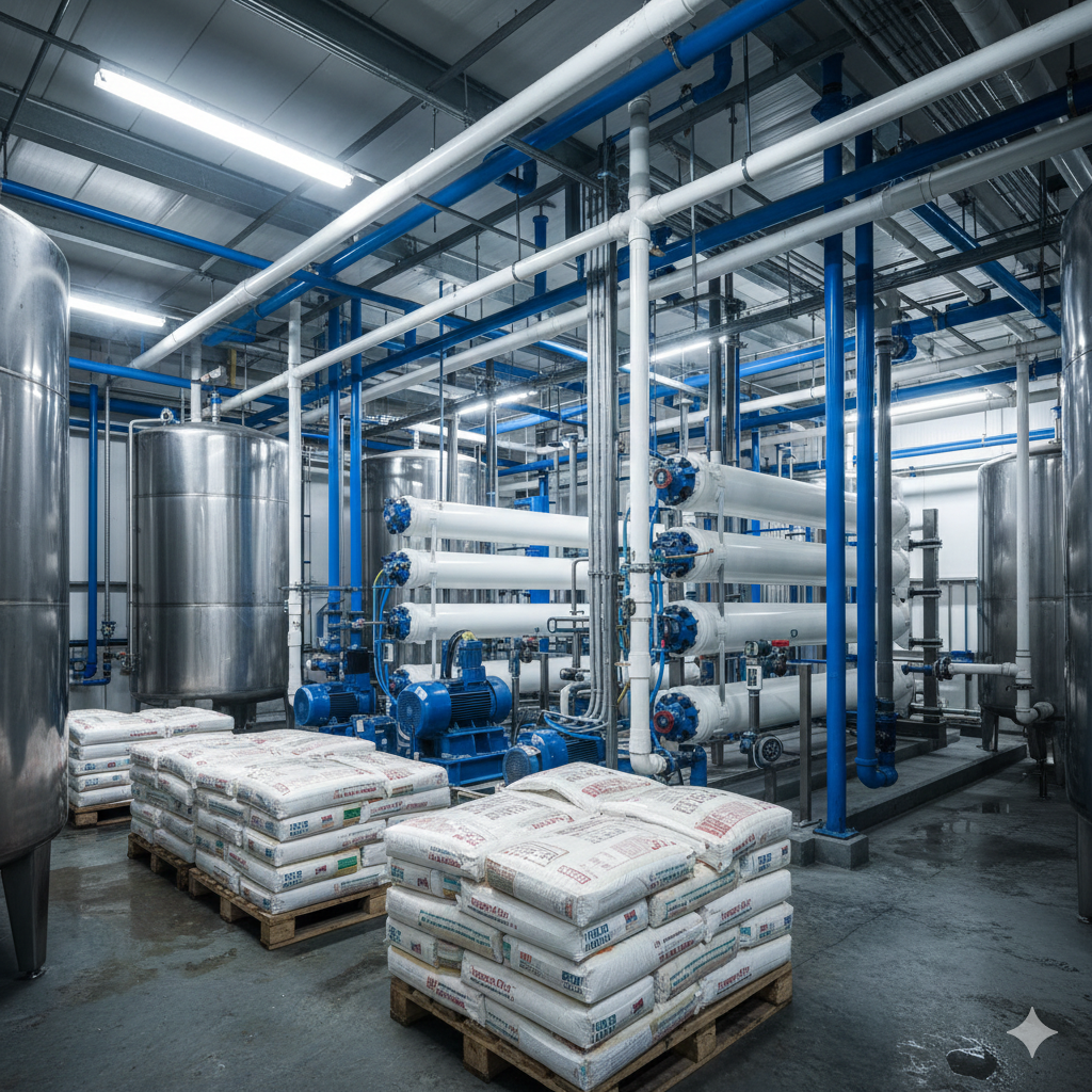 Chemical Reliance: To protect RO membranes from scaling due to groundwater hardness, facilities consume vast quantities of salt for softeners or anti-scalant chemicals. To combat bio-growth, various biocides are used. To remove chlorine before the RO, sodium metabisulfite is injected. This is a massive chemical procurement and storage undertaking.